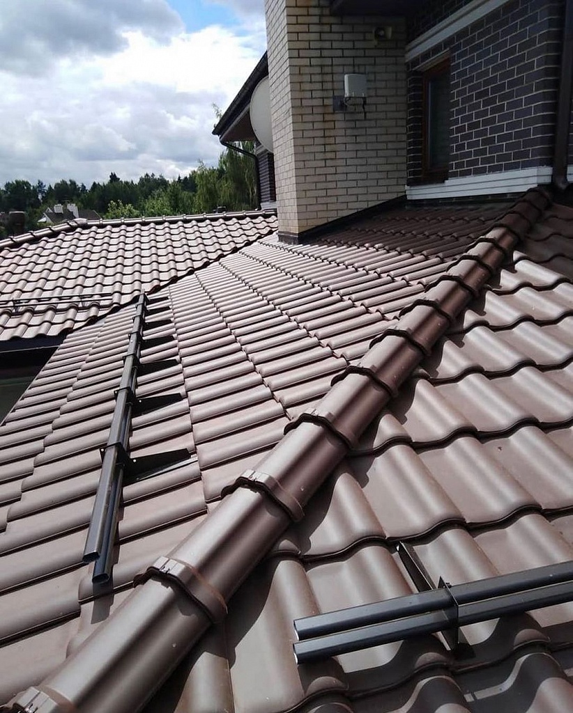 • Покрытие металлочерпицей. Долго сохраняющую защитные свойства крышу обеспечит корректный выбор материала, выполнение монтажа с должным качеством;
