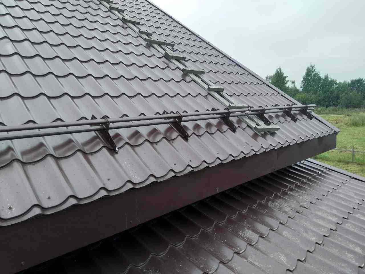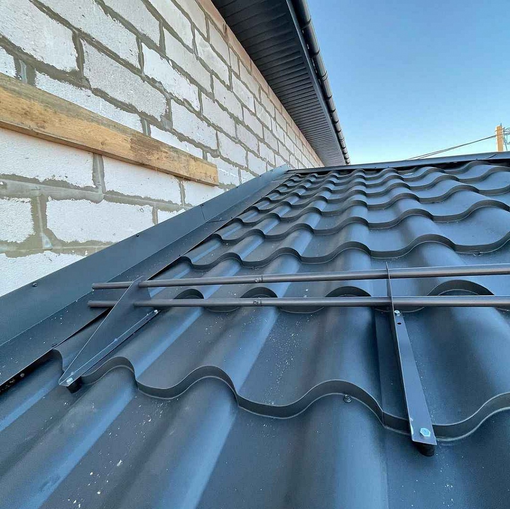 Устройство предназначено исключительно для фальцевой кровли. В наборе имеются комплект крепежей и плоских пластин, заворачивающихся в стоячий фальц без повреждения металла кровли.