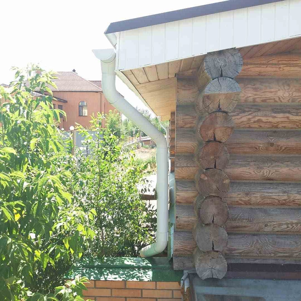 После дождя и при таянии снега вода по желобам направляется к сливным трубам. Если на объекте присутствует система дренажа вокруг здания, вода поступает сразу в коллектор.